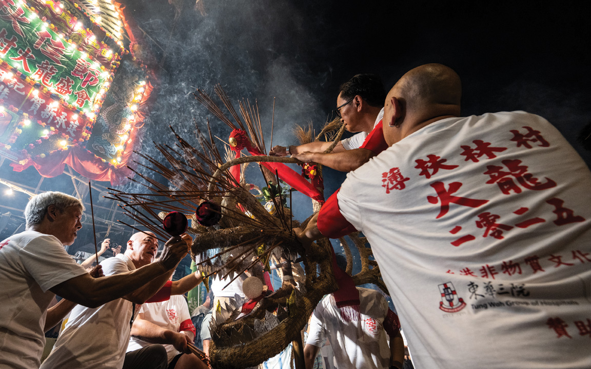 Edmond還記得第一年參與舞火龍的觸動:「那天是中秋節正日,火龍一如以往在村口拜祭後,便『打龍餅』入村。我特別記得那時隨著火龍隊逐家逐戶拜訪,互相祝賀『中秋節快樂!身體健康!』」有村民從火龍身上取香燭拿回家以沾喜氣,亦有村民從家裏拿香燭插在火龍身上以示祈福。「那種村裡街坊聚首一堂,喜氣洋洋的團結氛圍令我難以忘懷,那種鄰里關係是現今大都市很難見到的。」Edmond說。