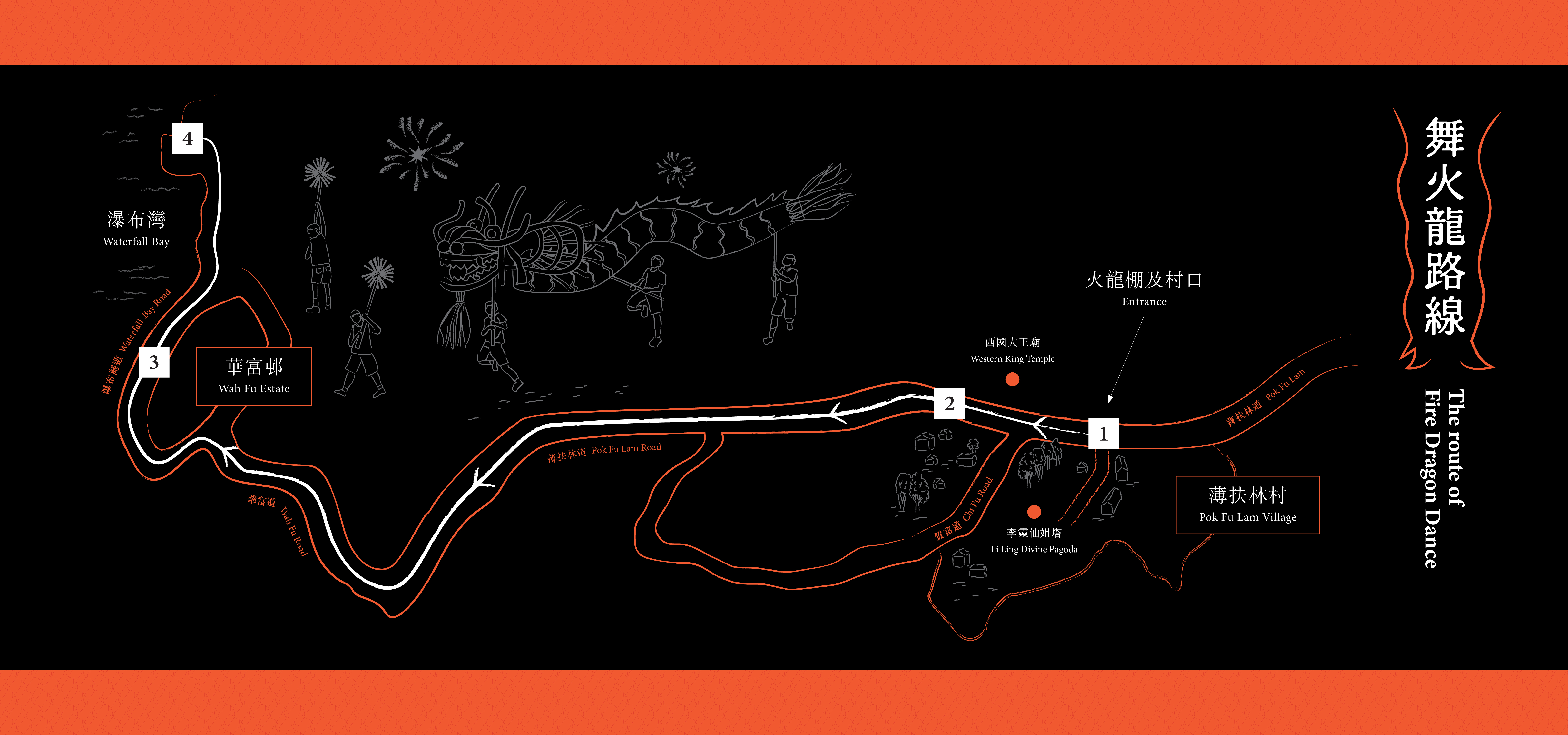 舞火龍的故事源於十九世紀末香港,相傳當時香港發生瘟疫,市民因相信香火能袪災除病、龍又有祥瑞之意,便各自紮作火龍驅除瘟疫。當時,香港島南區的薄扶林村村民為了求平安,利用禾草紮成龍,把燃點的香燭插滿龍身,舞動火龍在村內巡遊以淨化村落。瘟疫過後,村民將舞火龍的傳統留存至今,並在每年農曆八月十四及十五日舉辦舞火龍活動。時至今日,這項活動不再只是為了祈求健康太平,更是凝聚村民、與香港市民分享傳統習俗的文化盛事。