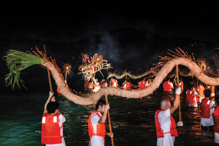 每逢中秋節(農曆八月十五日)─華人的團圓節日之一,香港有兩處地方「火光」和「濃煙」四起,而且還有一條生猛的巨龍在人群中穿插;這項每年可見的活動名為「中秋舞火龍」,據說已有過百年歷史,分別在香港島的大坑和薄扶林舉行。二零一七年,這傳統習俗更被列入首批《香港非物質文化遺產代表作名錄》。