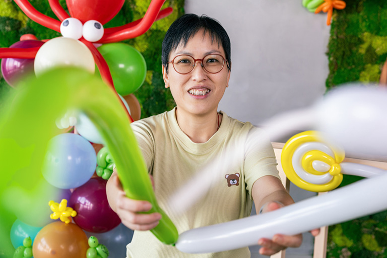 義工服務成為Winnie展現才藝的舞台。她經常參與社區活動及院舍探訪,為小朋友和家庭製作各式各樣的氣球,看到他們驚喜的表情,她便感到滿足:「小朋友拿到簡單的花或小狗氣球就很開心,而家長們常常提出更多挑戰,要我做出更複雜的造型。」